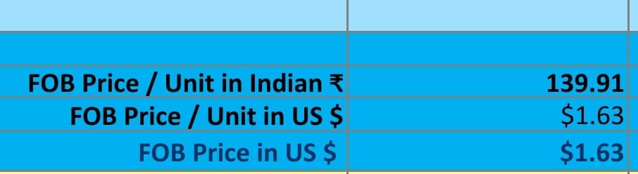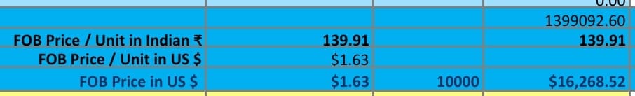 Pricing Calculated in Rupee Value & Dollar Value for PER UNIT PRICING